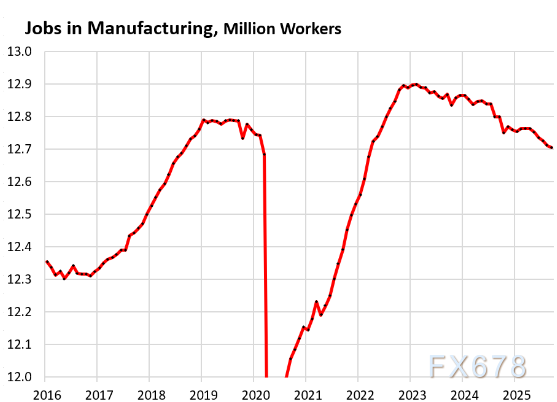 各行业就业分化明显:医疗保健和社会救助、休闲和酒店业等行业持续新增就业且部分创历史新高;专业和商业服务、制造业、信息业等则出现就业下滑;零售业、建筑业等呈现温和增长或小幅波动,不同行业受自动化、电子商务、市场需求等因素影响呈现差异化走势。