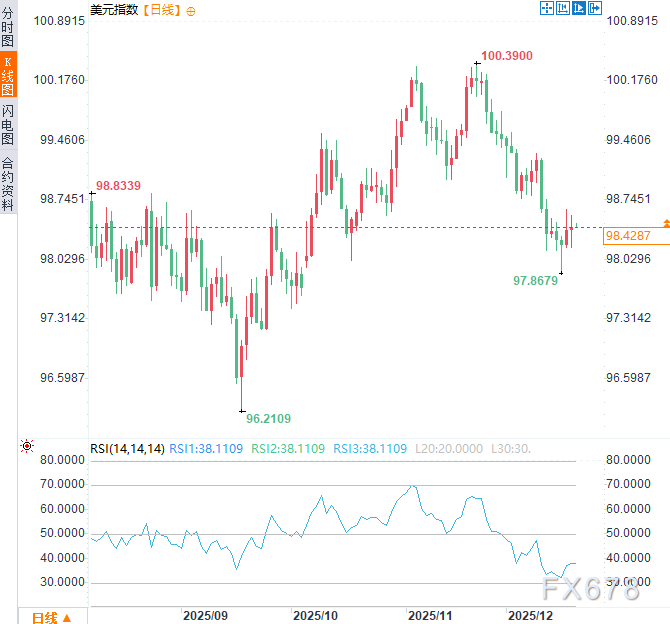 汇通财经APP讯——美元指数表面稳定,实则存在结构性疲软,其相对强势主要由日元极端贬值所支撑。市场资金正从美元体系流向贵金属及其他避险资产,形成“货币贬值交易”浪潮。周五(12月19日)亚市早盘时段,美元指数于98.45附近震荡。