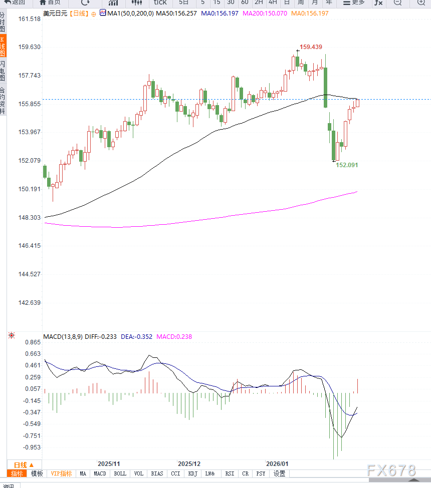 156关口的突破更多具有情绪与短线意义,而真正决定趋势方向的,仍是汇价能否有效突破并站稳156.50—157区间。
