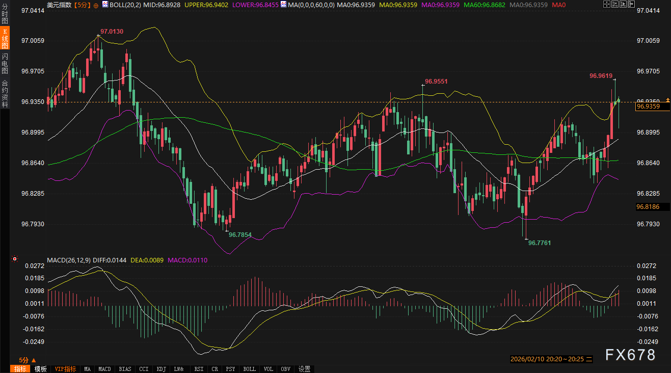 汇通财经APP讯——周二(2月10日),全球金融市场在关键经济数据公布前陷入典型的观望格局。美元指数于96.90一线